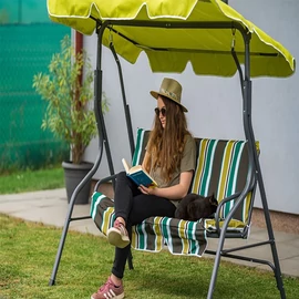 A 3 személyes PANAMA kerti hinta kertjébe, teraszába is alkalmas, porszórt bevonattal kezelt fémszerkezettel és poliészterből készült ülőfelülettel rendelkezik. A hinta méretei: 170 x 110 x 153 cm, ülésmagasság 6 cm, teherbírása 220 kg.