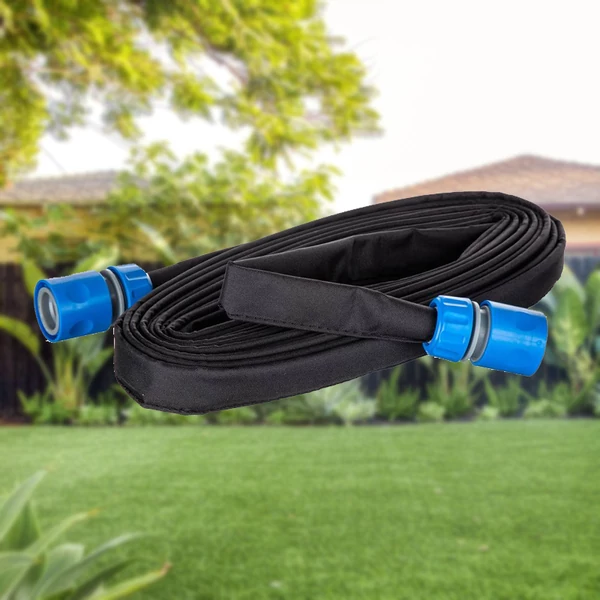 Kétrétegű lapos tömlő csepegtető öntözéshez, gyorscsatlakozókkal (1x STOP funkcióval), amely lehetővé teszi a szükség szerinti egyszerű és gyors telepítést. Szükség esetén lehetőség van több tömlő csatlakoztatására és így azok hosszának meghosszabbítására. Hatékony öntözési mód? a tömlő teljes hosszában egyenletesen csöpög a víz és így optimálisan öntözi a virágágyásokat, bokrokat, fákat vagy üvegházakat? ahol nem hoz létre felesleges levegő páratartalmat. A felhasznált víz akár 80%-át is megtakaríthatja. Maximális nyomás: 5 bar.