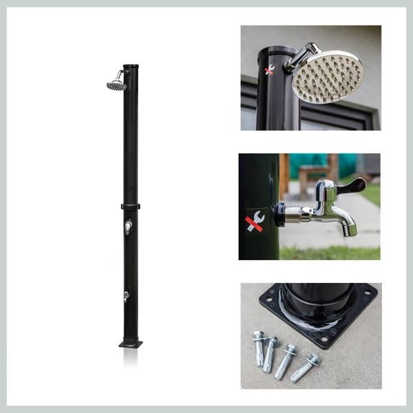 Ez a praktikus és energiatakarékos napelemes zuhany ideális választás szabadtéri használatra, különösen a nyári hónapokban.