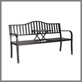 A REA acél kerti pad fekete acélból készült, és beépített kihúzható asztallal rendelkezik, így a pad kényelmes térré alakítható, ahol pihenhet, vagy akár egy délutáni kávét is elfogyaszthat. Az egyszerű beállítás lehetővé teszi, hogy három személy számára elegendő helyet biztosítson, miközben a pad maximális teherbírása 200 kg, így biztosítva a kényelmet és a stabilitást.