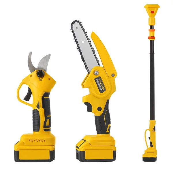 A HAYAMI 3 az 1-ben multifunkciós készlet ideális választás mindazok számára, akik hatékony és sokoldalú eszközt keresnek kerti munkákhoz. A készlet egyetlen rendszerben ötvözi a lítium akkumulátoros láncfűrészt, az ágvágó ollót és a hosszabbító rudat, így könnyedén elvégezhetők a különböző metszési és vágási feladatok.