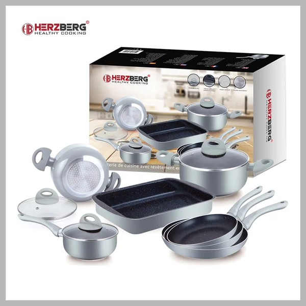 Herzberg - 10 részes márvány bevonatú edénykészlet - ezüst HG-9016SL