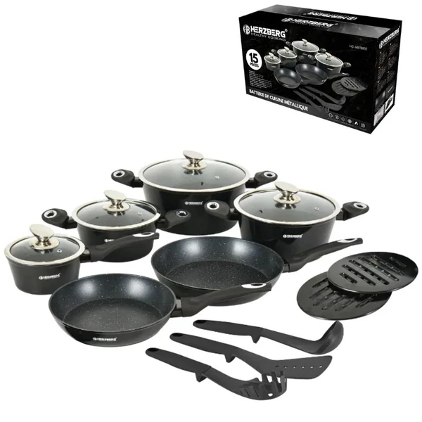 Herzberg 15 részes márványbevonatú edénykészlet metál fekete HG-METBK15