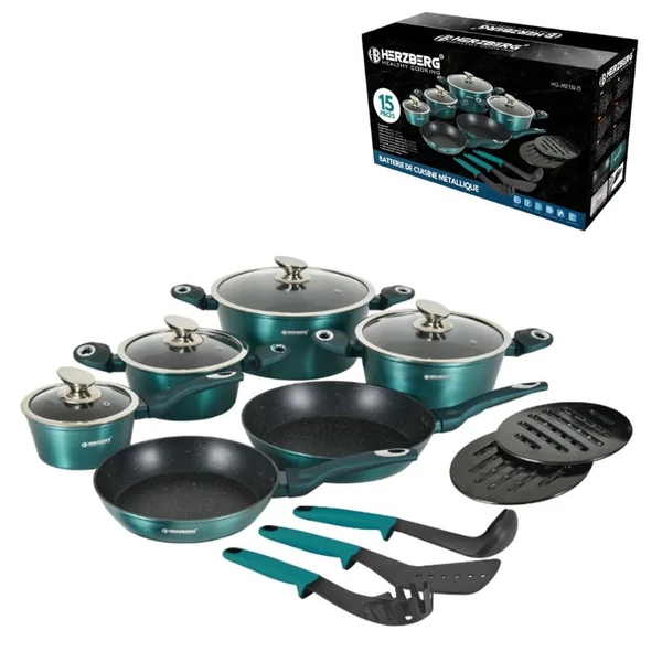 A Herzberg HG-METRD15 edénykészlet tökéletes választás azoknak, akik egy komplett, stílusos és strapabíró megoldást keresnek a mindennapi főzéshez. A kiváló tapadásmentes márványbevonat és az egyenletes hőeloszlás segít, hogy kevesebb zsiradékkal főzhess, és könnyebben tisztíthasd az edényeket – mindezt elegáns, fényes piros színben, amely feldobja a konyhád hangulatát.