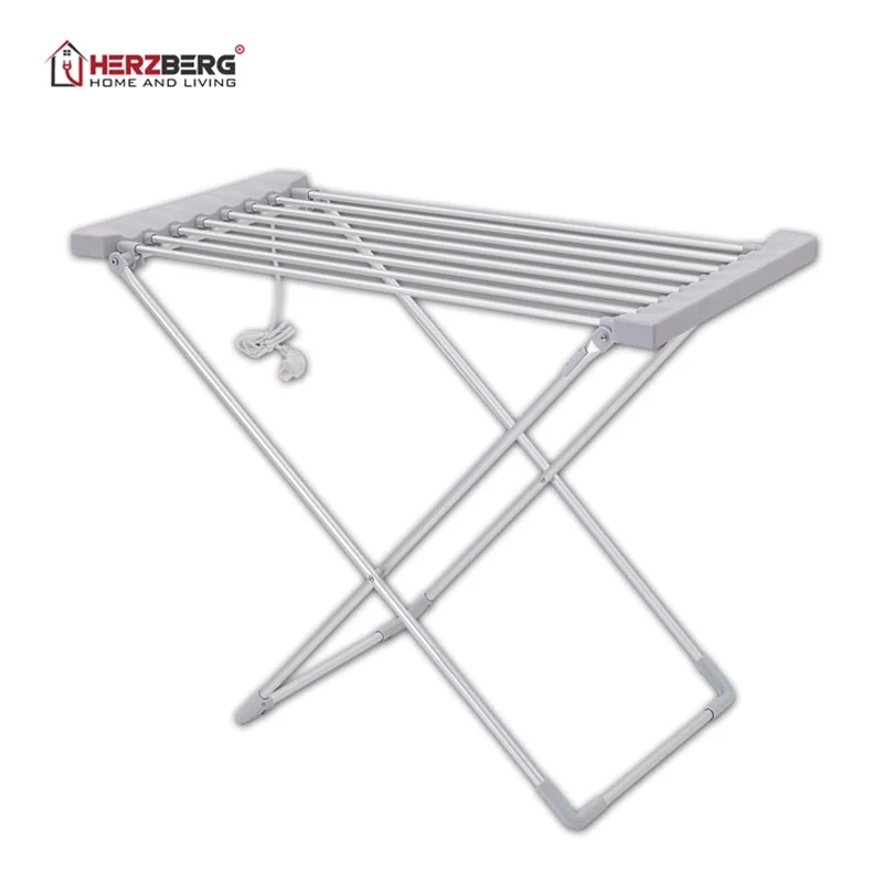 A strapabíró, rozsdamentes acélból készült szárító 8 fűtőcsővel és beépített termosztáttal rendelkezik, amely biztonságos és egyenletes hőt biztosít minden textíliához. A kihajtható szárnyaknak köszönhetően akár 10 kg ruhát is elbír, mégis könnyen összecsukható és kis helyen tárolható.
