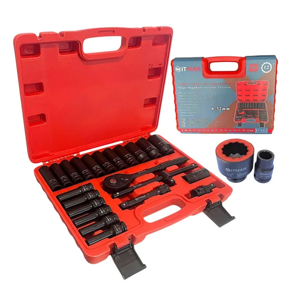 Hitman 1/2" gépi dugókulcs készlet, 23 részes, 12-lapfejű kivitel (8–32 mm) HA-6844