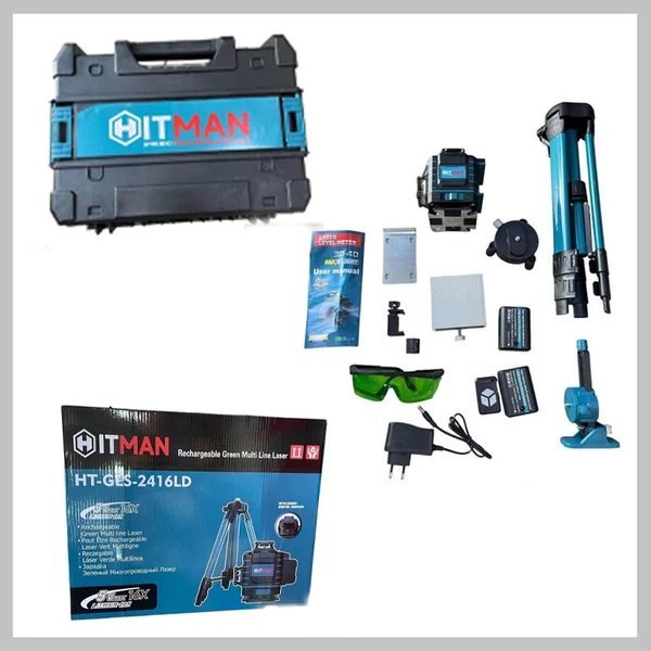 HITMAN Szintező Lézer 16V Zöld 4D állvánnyal HT-GLS-2416LD