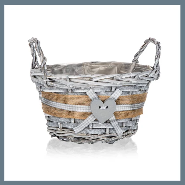 HOME DECOR Fonott kosár fogantyúval, szürke, 19 x 11 cm, kerek 63940596