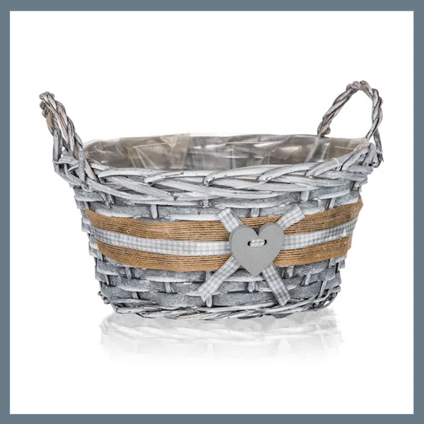 HOME DECOR Fonott kosár fogantyúval, szürke, 25 x 12 cm, kerek 63940597