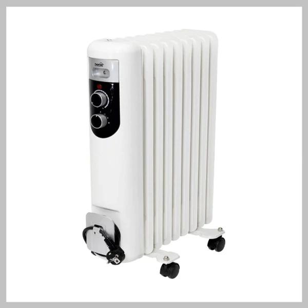 Elektromos olajhűtő 2000 W, 9 elem, 3 fűtési fokozat, mechanikus termosztát, 12x60x44 cm Olajhűtő, 9 elem, hálózati tápellátás Az elektromos olajhűtő tökéletes a hőérzet biztosításához a hideg időszakban. A 9 elem biztosítja a szoba közvetlen és gyors fűtését, fokozott kényelmet biztosítva. A radiátor által kibocsátott hő a benne lévő olajnak köszönhető, amelyet elektromos ellenállások segítségével melegítenek. Az áramellátás úgy történik, hogy a hálózathoz egy szabványos csatlakozóaljzathoz csatlakozik, 230 V bemeneti feszültséggel és 50 Hz frekvenciával. A tápkábel hossza 1,4 méter. Mechanikus termosztát, 3 fűtési fokozat, könnyen szállítható. Fémből, fehérrel Finish padlóra szereléssel könnyen szállítható és mozgatható a kerekek miatt, amelyekkel ellátva van. Állítható fűtőteljesítmény 3 fokozatban 800W, 1200W és 2000W. Túlmelegedés vagy felborulás esetén automatikusan kikapcsol