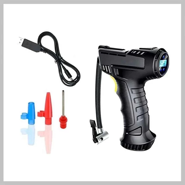 Hordozható vezeték nélküli autós kompresszor – LCD kijelzővel, USB-ről újratölthető, 120W teljesítménnyel, fekete színben