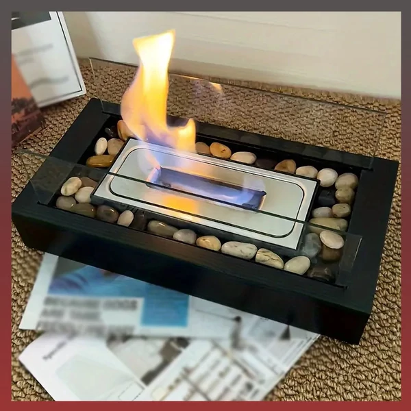 Ez a hordozható kandalló egy elegáns és praktikus darab, matt fekete fémből és üvegből, modern és letisztult dizájnnal, könnyen összeszerelhető. Figyelemre méltó az a tény, hogy ez a kandalló nem bocsát ki füstöt, így tiszta és hatékony megoldást kínál a nappali vagy a kert meleg hangulatának megteremtésére anélkül, hogy a levegő minőségét veszélyeztetné. Minőségi anyagokból készült asztali kandalló, melyhez tartozék tartozik a kényelmes és biztonságos lánggyújtáshoz és eloltáshoz. Maximális égőkapacitás: 150 ml.