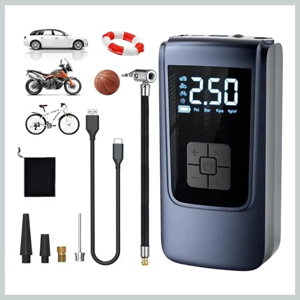 Ez a hordozható digitális autós kompresszor egy sokoldalú és praktikus eszköz, amely ideális autók, motorkerékpárok, kerékpárok, sportlabdák és felfújható eszközök (pl. úszógumik) gyors és hatékony felfújására. A kompakt, akkumulátoros kialakítás lehetővé teszi, hogy bárhová magaddal vidd, és szükség esetén gyorsan használhasd.