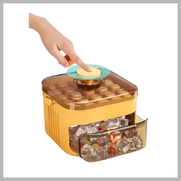 Használat: Töltse meg vízzel a felső részt, fagyassza le, majd a nyomófedél segítségével egyszerűen nyerje ki a jégkockákat az alsó tárolóba – tisztán, gyorsan és csepegésmentesen.