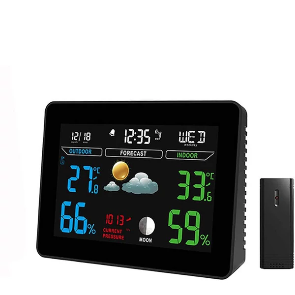 Időjárásmérő rendszerünk beltéri kültéri hőmérővel rendelkezik kültéri érzékelővel. Segít pontosan követni a beltéri/kültéri hőmérsékletet és páratartalmat.