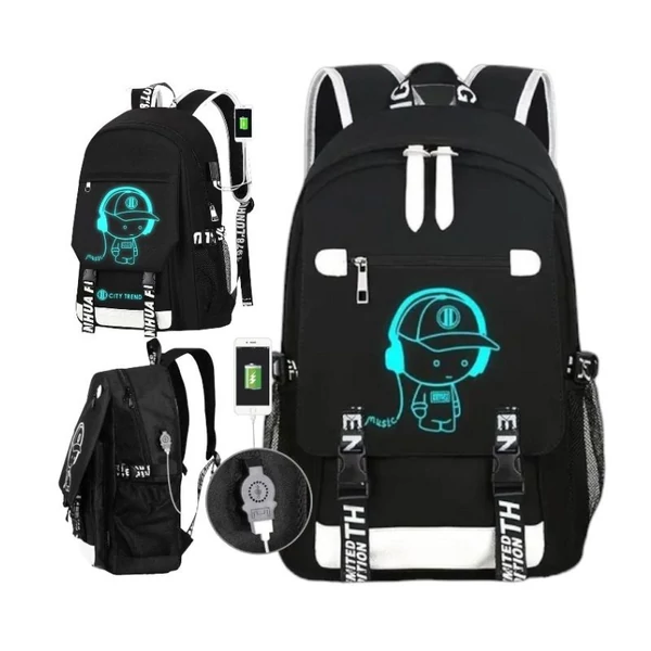 Ifjúsági iskolai hátizsák USB csatlakozóval és sötétben világító grafikával – PL157
