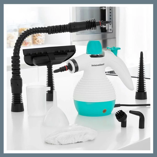 Többcélú gőztisztító, amely 9 tartozékot tartalmaz az alapos és teljeskörű tisztítás megkönnyítéséhez. Kompakt kialakítása miatt nagyon kényelmes és könnyen használható. Forró gőznyomás alkalmazásával, vegyszerektől mentesen tisztítja és fertőtleníti, hatékonyan távolítja el a zsírt, a penészt és a foltokat. Ideális fürdőszobákban, konyhában, autókban stb. Lehetővé teszi a tisztítást kemény felületeken (csempe, padló, mosogatók, munkalapok, ajtók, ablakok, stb.) És puha felületeken (szőnyegek, ágyak, matracok, paplanok, kanapék, kárpitok stb.). Ezenkívül óvatosan eltávolítja a ráncokat a függönyökről. Gyorsan felmelegszik (3-5 perc), gőzfejlesztési autonómia 15-20 perc.