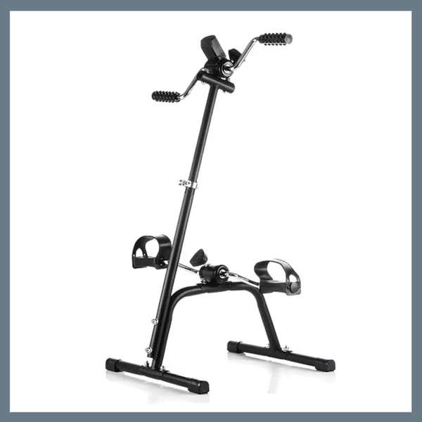 Ez az eredeti és modern dupla pedálos edzőgép lehetővé teszi a kényelmes ülő testmozgást, így ideális idősebbeknek, mozgáskorlátozott személyeknek és nagyon ülő életmódot folytatóknak. Tökéletes otthoni edzéshez, minimális erőfeszítéssel és unalom nélkül, miközben tévét, filmeket, sorozatokat vagy szórakoztató műsorokat néz.