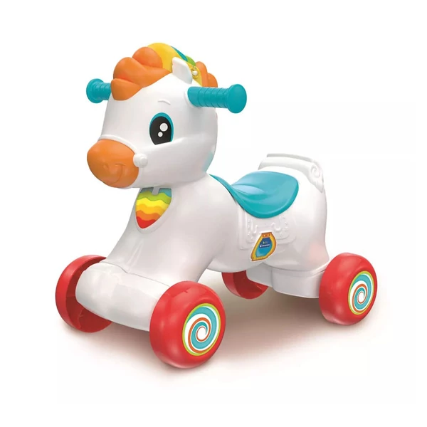 Sokoldalú fejlesztő játék: A hintaló lábbal hajtható járműként és interaktív játékként is használható.