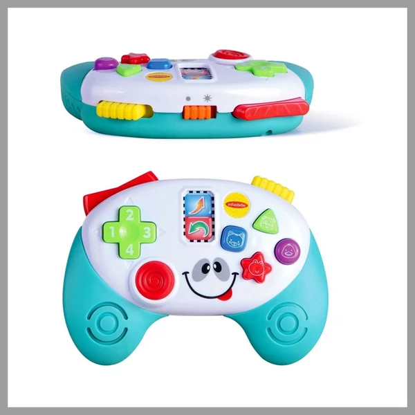 Ez az interaktív játékvezérlő remek szórakozást nyújt a legkisebbeknek, miközben fejleszti érzékszervi és motoros képességeiket. A konzol különböző fény- és hanghatásokat ad ki a gombok megnyomására, így izgalmas játékélményt biztosít. A tetején található ON/OFF kapcsolóval könnyedén be- és kikapcsolható, míg a hátoldalon egy hangerőszabályzó is helyet kapott a kényelmes használat érdekében.