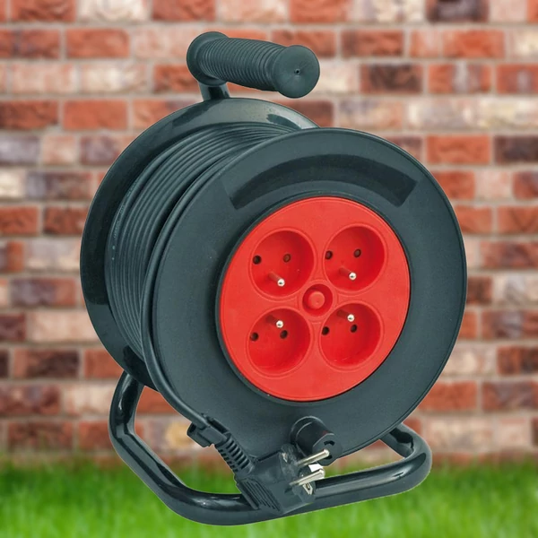 Fém kerettel ellátott hosszabbító kábeldob, amelyre egy 1 mm² átmérőjű (3 eres) kábel van feltekerve. A kábel erős gumiszigeteléssel rendelkezik. A keretre gumi fogantyú van felszerelve, ami megkönnyíti a szállítást. 4-aljzatos hosszabbító kábel földeléssel, amely lehetővé teszi több készülék egyidejű csatlakoztatását; hőbiztosíték is van benne.