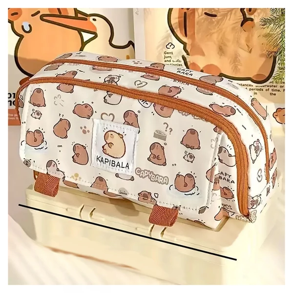 Ez a Kapibara tolltartó tökéletes választás minden fiatal számára, aki szeretné stílusosan tárolni írószereit, sminkeszközeit és egyéb napi szükséges dolgait. Az aranyos kapibara állatmintával díszített tolltartó vidám és praktikus kiegészítője lehet az iskolai, illetve utazós felszerelésnek.