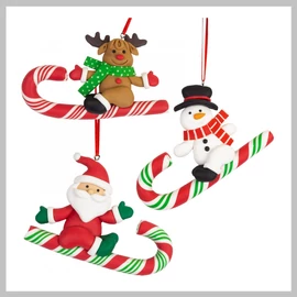 Karácsonyfadísz 3 féle mintás 10cm-es karácsonyi minta cukorka szánkó 49788