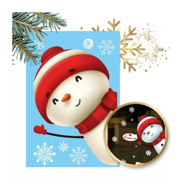 Aranyos hóemberes ablakmatrica, amely meghitt és vidám hangulatot varázsol az ünnepi időszakban. A mosolygós hóember hópelyhekkel kiegészítve tökéletes választás otthon, gyerekszoba, iskola vagy kirakat dekorálására. Könnyen felhelyezhető üvegfelületre, nyom nélkül eltávolítható, és újra felhasználható.