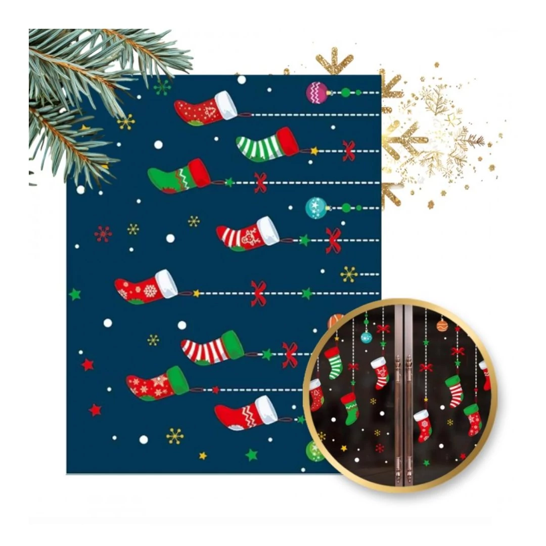 Vidám karácsonyi ablakmatrica, amely színes zokni- és gömbmintáival különleges hangulatot teremt az ünnepi időszakban. A 30 × 45 cm-es lapon többféle karácsonyi zokni, masni, csillag és hópehely található, amelyek könnyen felhelyezhetők bármilyen üvegfelületre. A matricák nyom nélkül eltávolíthatók és újra felhasználhatók, így több szezonon át szolgálhatják a dekorációt.