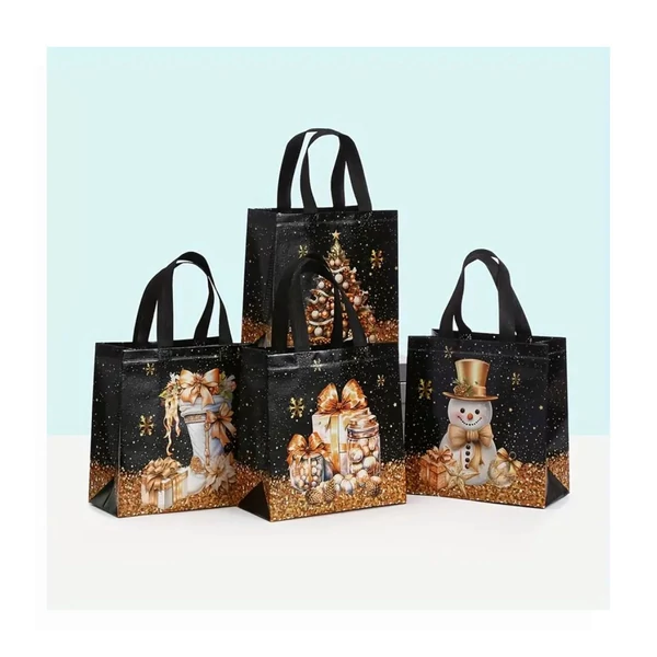 Elegáns és praktikus ajándéktáska szett, amely arany-fekete színvilágban, ünnepi mintákkal készült. A 12 darabos készlet tökéletes választás karácsonyi ajándékok stílusos csomagolásához.