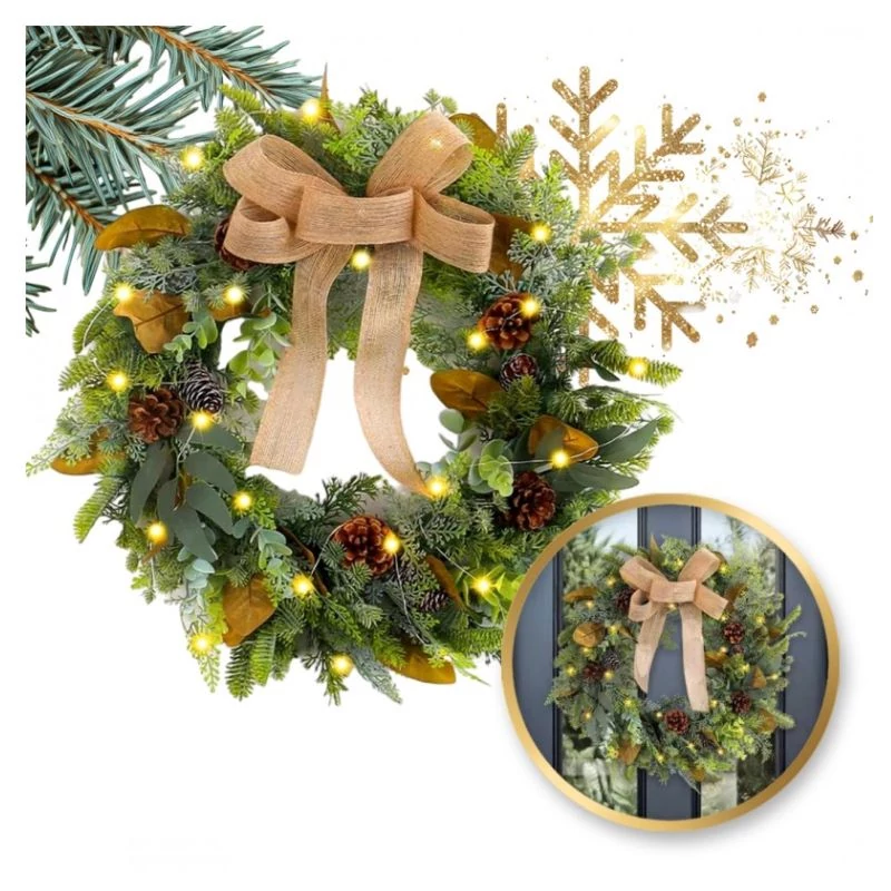 Elegáns, élethű hatású girlanda (ajtódísz) , amely egyaránt alkalmas szezonális és egész évben használható dekorációnak. Tökéletes módja, hogy karaktert és hangulatot adj otthonod bejáratának, ajtajának vagy belső tereidnek.