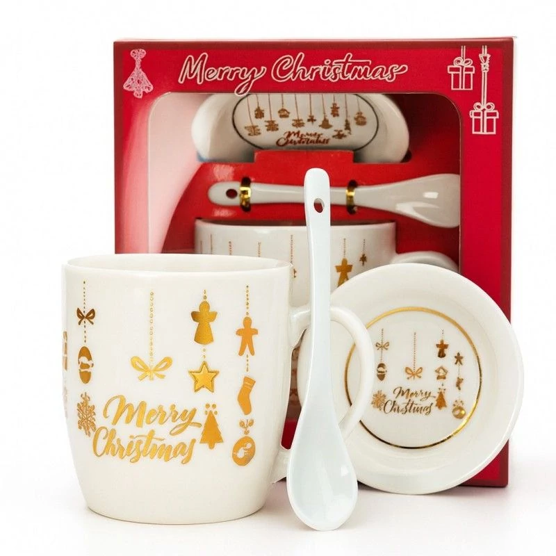 Ez a karácsonyi motívumokkal díszített kerámia bögre szett tökéletes ajándék minden tea- és kávérajongónak.