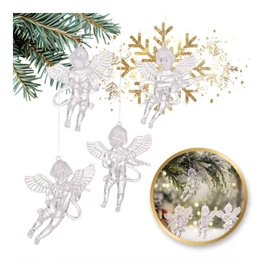 Elegáns és fényes hatású angyaldíszek, amelyek kristályt idéző áttetsző anyagból készültek. A szett 4 darab különböző pózban ábrázolt szárnyas angyalt tartalmaz, amelyek tökéletesen mutatnak a karácsonyfán, koszorún vagy ünnepi dekoráció részeként.