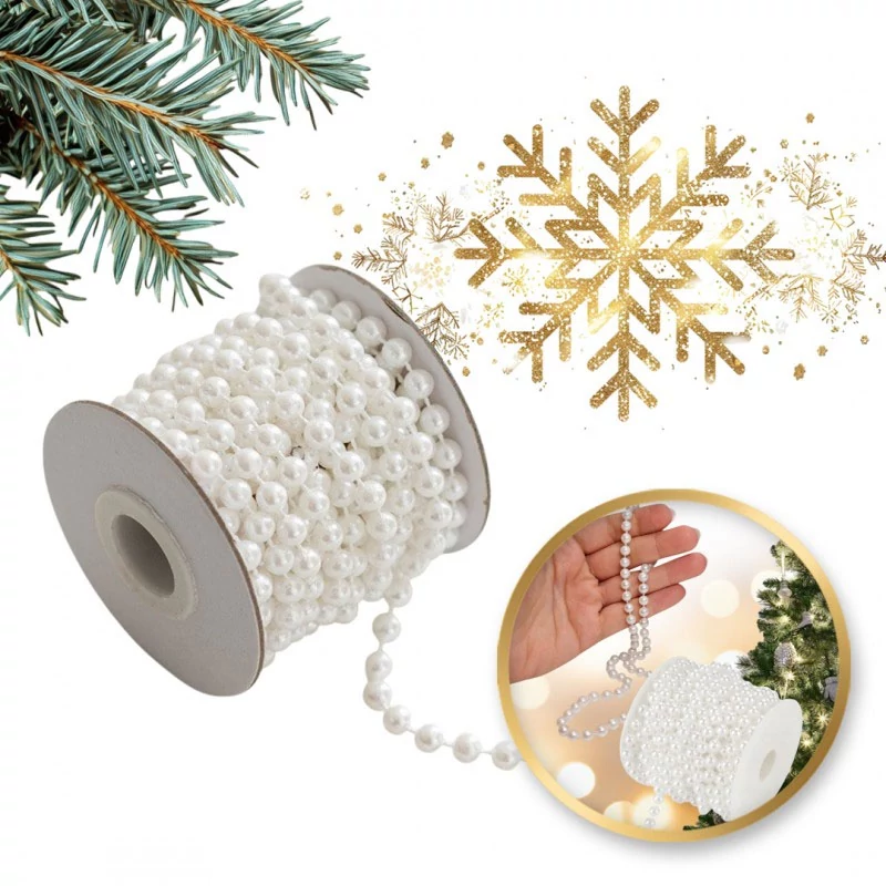 Elegáns gyöngyös girland, amely tökéletes kiegészítője a karácsonyi dekorációnak. Használható karácsonyfán, asztaldíszekben, koszorúkon vagy bármilyen ünnepi kompozícióban, hogy még hangulatosabbá tegye az otthont.