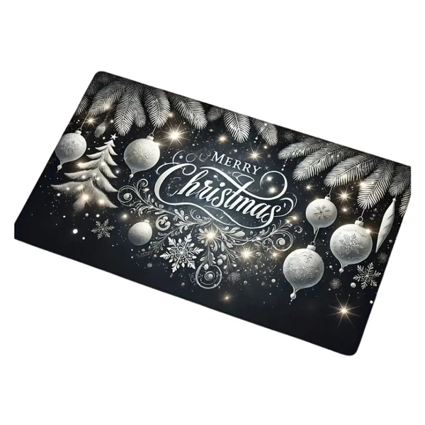 Ez az elegáns karácsonyi szőnyeg stílusos fekete alapon ezüst díszekkel, hópelyhekkel és fenyőág mintával készült. Különleges „Merry Christmas” felirata ünnepi hangulatot teremt, miközben praktikus és kényelmes kiegészítője otthonodnak. Puha flanel anyaga kellemes tapintású, csúszásmentes hátoldala pedig biztonságos használatot garantál.