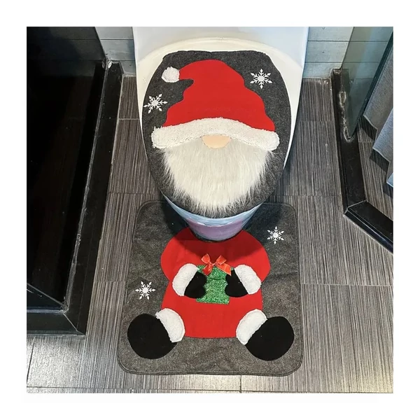 Vidám karácsonyi WC-szett, amely Mikulás mintával díszített, puha és dekoratív kiegészítő a fürdőszobába. A szett tartalmaz egy WC-tető huzatot és egy szőnyeget, így egyszerre praktikus és ünnepi hangulatot áraszt.