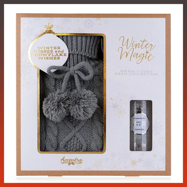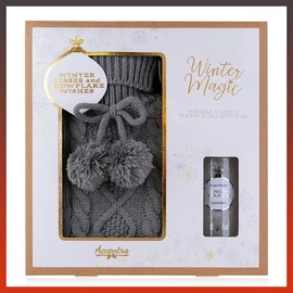 ajándékcsomagolásban, melyben 100 ml-es habfürdő, meleg vizes palack szövetborítással (500 ml)