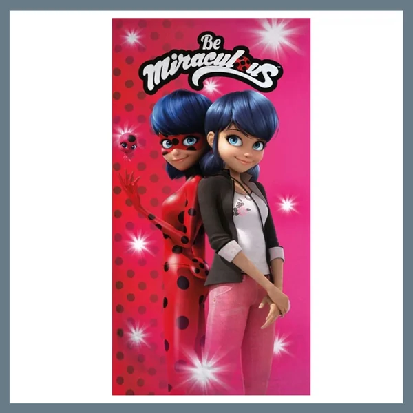 Ezzel a vidám Miraculous Ladybug mintás törölközővel minden fürdés vagy strandolás igazi élmény lesz! A kedvelt Katicabogár és Fekete Macska karakterek garantáltan feldobják a napodat.