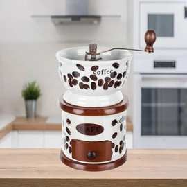- Kézi kávédaráló kerámia örlőbetéttel, tároló fiókkal, porcelán tartállyal.