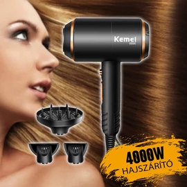 Szűkítő és göndörítő adapterrel rendelkező, ergonómikus kialakítású hajszárító, hőfok és levegő erősség szabályzóval ellátva.