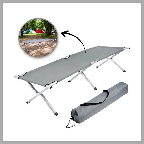Ez a kempingágy a szabadtéri pihenés ideális kiegészítője, könnyen szállítható és kényelmes pihenést biztosít a természetben.
