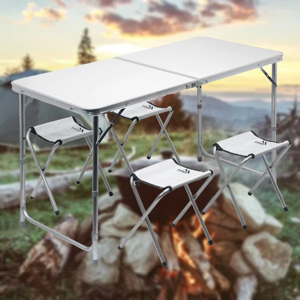 Kempingasztal DOUBLE összecsukható, teleszkópos szürke + 4x szék 13488