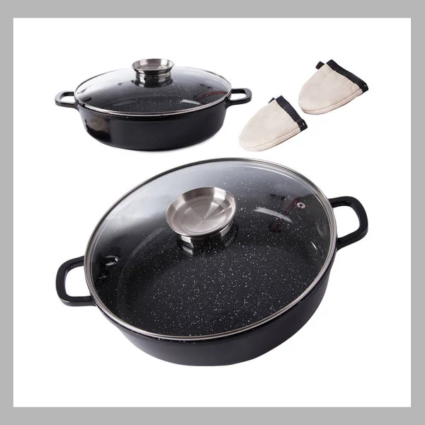 Az edény kiváló minőségű alumíniumötvözetből készül, amelyet nyomás alatt öntöttek. Könnyű , mégis erős és hatékonyan vezeti a hőt . Ez ideálissá teszi ételek főzéséhez különféle típusú tűzhelyeken, beleértve az indukciós tűzhelyeket is.