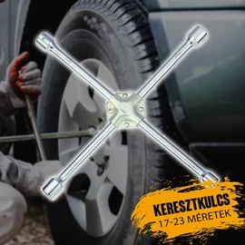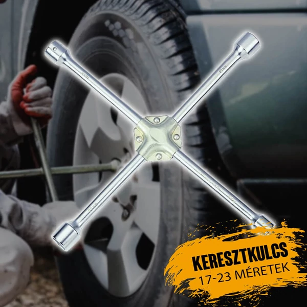 A kerékkulcs, másnéven keresztkulcs az autókerék le- és felszereléséhez nyújt segítséget a 17, 19, 21 és 23 mm átmérőjű fejjel. Hasznos eszköz kerékcsere során. Kereszt kialakításának köszönhetően, megnövelt erőkar könnyebb a csavarok kilazítása, illetve meghúzása.