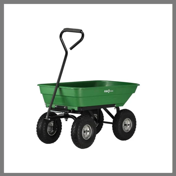 A kocsi 4 pneumatikus kerékkel, PP konténerrel és húzófogantyúval rendelkezik.