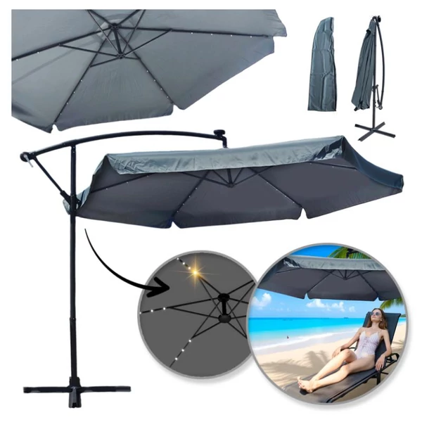 Kerti napernyő SOLAR LED világítással, szürke színben OGP11SZ