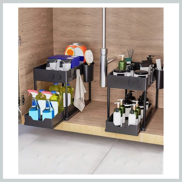 Ez a praktikus és helytakarékos két szintes tárolórendszer ideális választás a mosogató alatti tér rendszerezésére, legyen szó konyhai tisztítószerekről, fürdőszobai kozmetikumokról vagy egyéb háztartási kiegészítőkről.