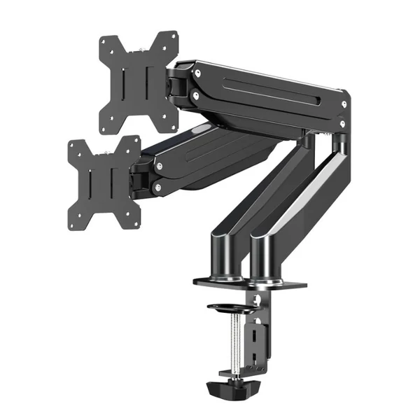 Az Esperanza MACHE egy masszív, fém anyagból készült, kétmonitoros asztali tartó, amely ideális megoldás otthoni és irodai munkához egyaránt. Lehetővé teszi két darab, 17"–27" (43–63 cm) méretű monitor biztonságos rögzítését, miközben szabadon állítható a magasság, dőlésszög és forgatás, hogy mindig az ergonomikus nézőpontot biztosítsa.