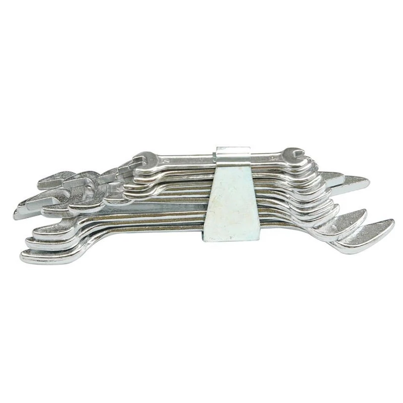 Ez a 10 darabos villáskulcs készlet nélkülözhetetlen eszköz minden műhelyben és háztartásban. A kulcsok kétoldalas kialakításúak, így egyetlen szerszám két különböző méretet kínál.