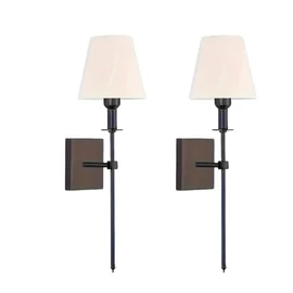Ez a 2 darabos klasszikus fali lámpa szett elegáns megjelenésével ideális választás lehet hálószobába, nappaliba vagy akár folyosóra. A matt fekete fém test és a lágy árnyalatú búra harmonikus megjelenést biztosít bármilyen enteriőrben. A lámpa minden E26 típusú izzóval kompatibilis.